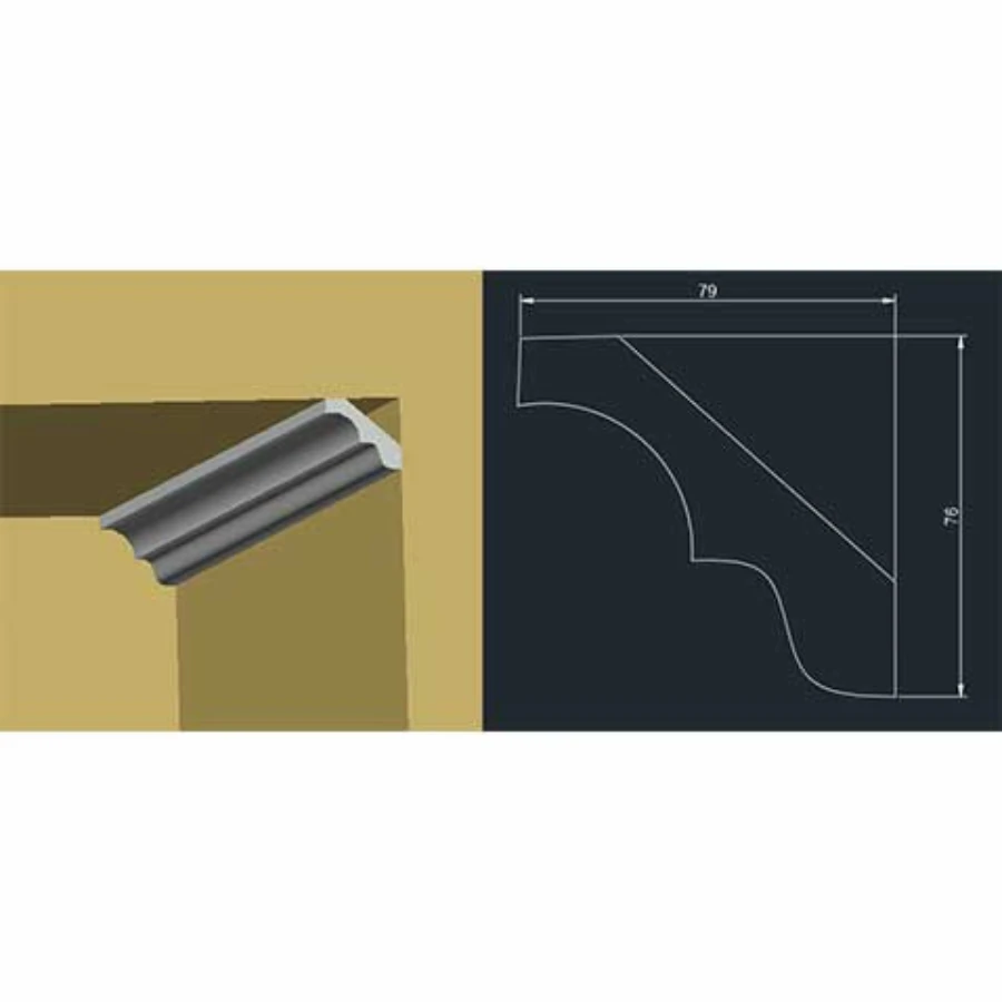 Cornisa de tavan CT 04 este un element decorativ realizat din polistiren extrudat (XPS), conceput pentru finisarea îmbinării dintre perete și tavan. Cu dimensiuni de 79 × 76 × 2000 mm, produsul oferă un profil echilibrat, potrivit pentru spații rezidențiale, birouri sau zone comerciale unde este necesară o tranziție estetică între suprafețe.