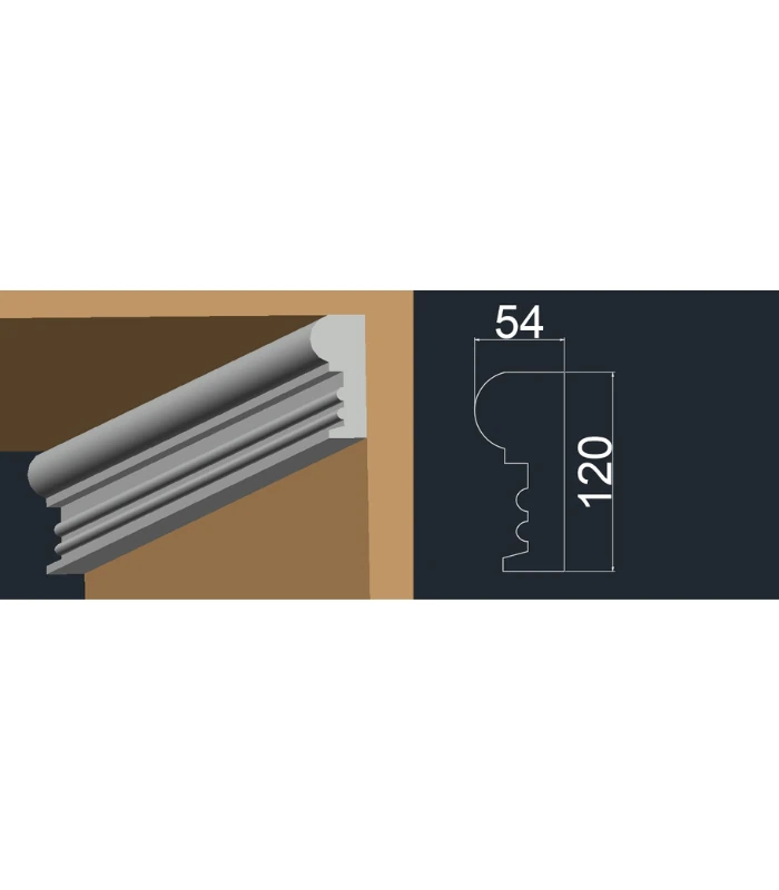 Dimensiunile de 120x54x2000 mm permit integrarea cornișei în diverse tipuri de proiecte, de la amenajări rezidențiale până la aplicații comerciale. Profilul este conceput pentru a crea o tranziție estetică între perete și tavan, contribuind la un aspect finisat și ordonat al spațiului. Utilizarea unei cornise din polistiren XPS reduce greutatea totală a sistemului decorativ și facilitează manipularea și montajul.