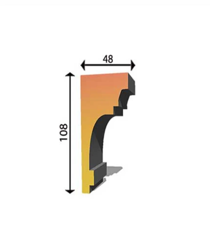 Ornament EX24 din polistiren, dimensiune 108×48, destinat decorării spațiilor interioare prin soluții ușor de montat și adaptabile.